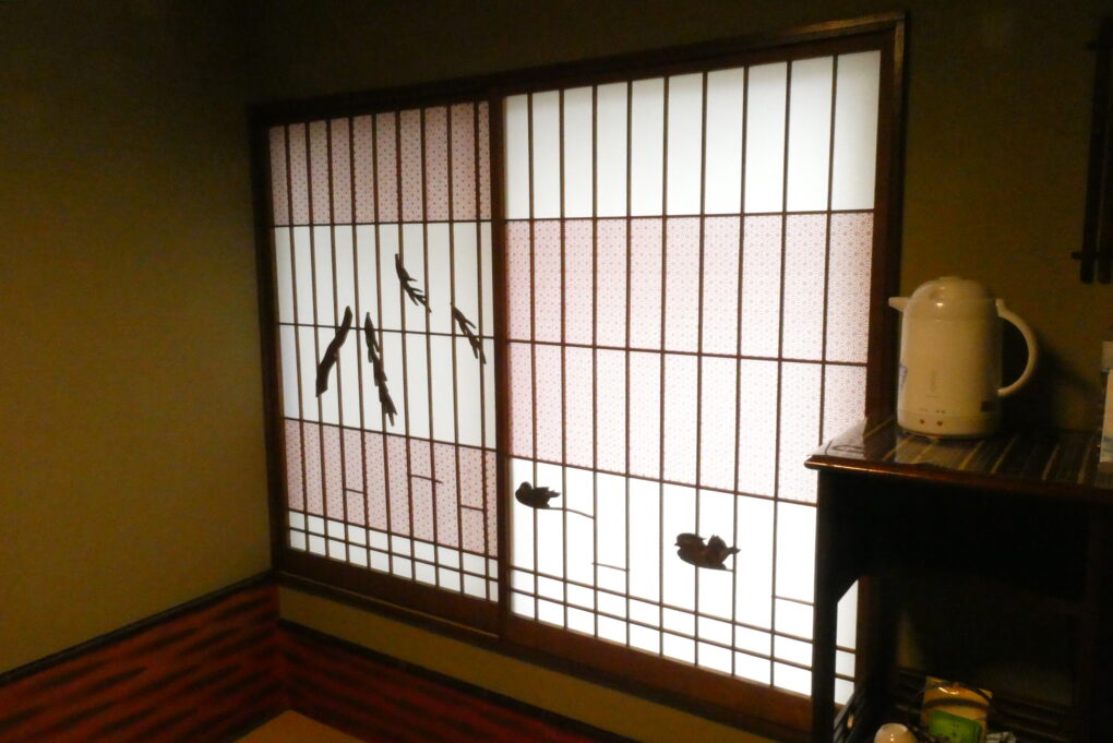 窓を覆うのは、白地に茶系の模様がある障子だ。
