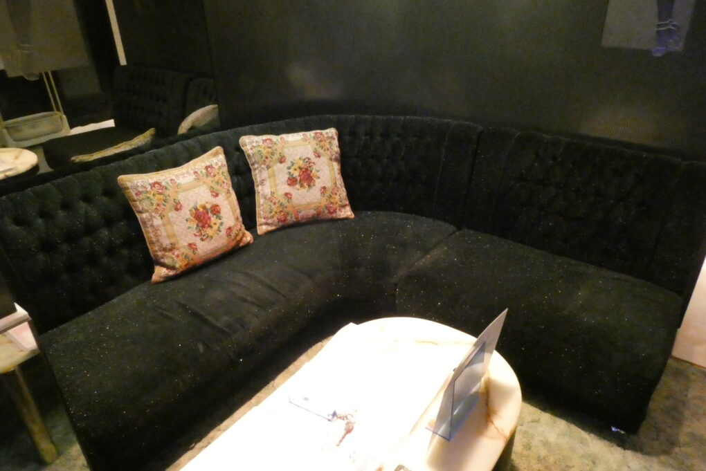 黒いソファは、よく見るとラメ加工が施されていて、キラキラしている。