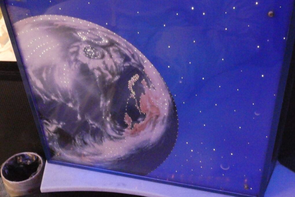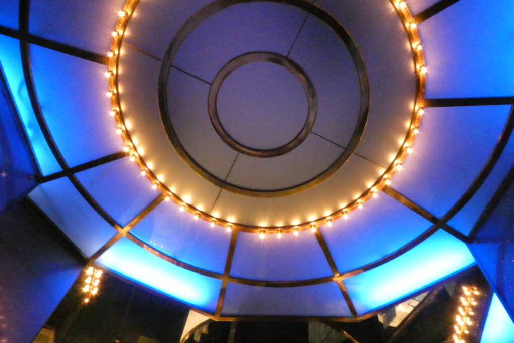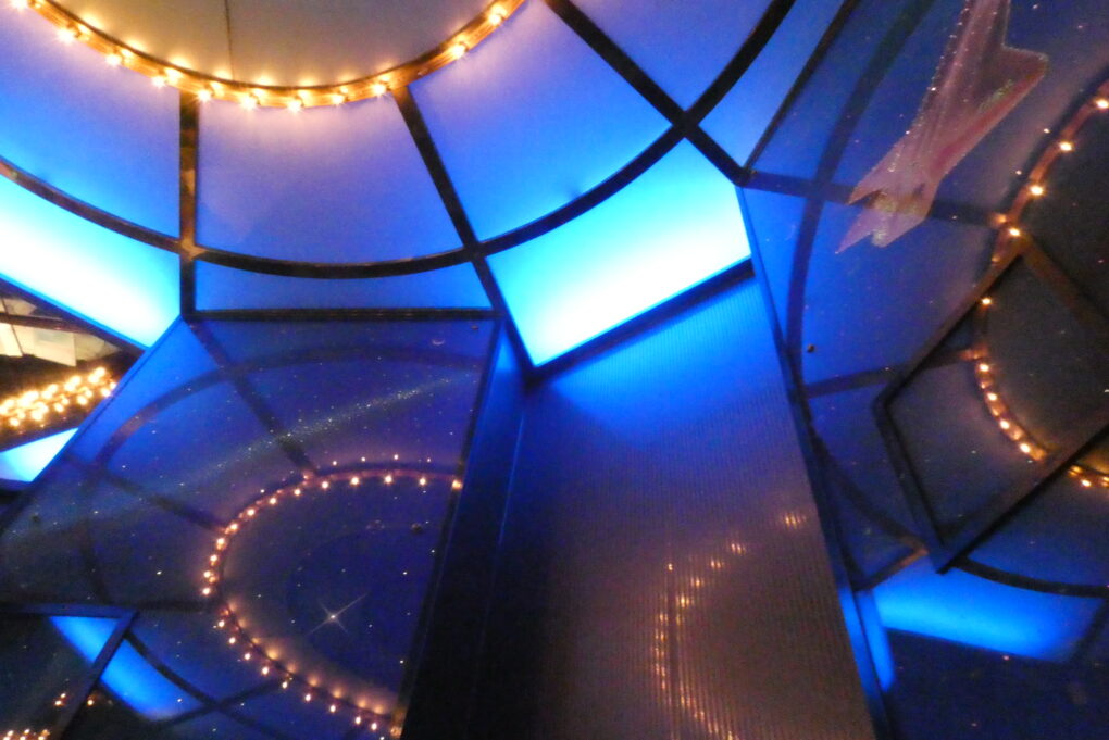 円形の外側からは青い光が放たれ、内側では豆電球が煌めきを演出する。